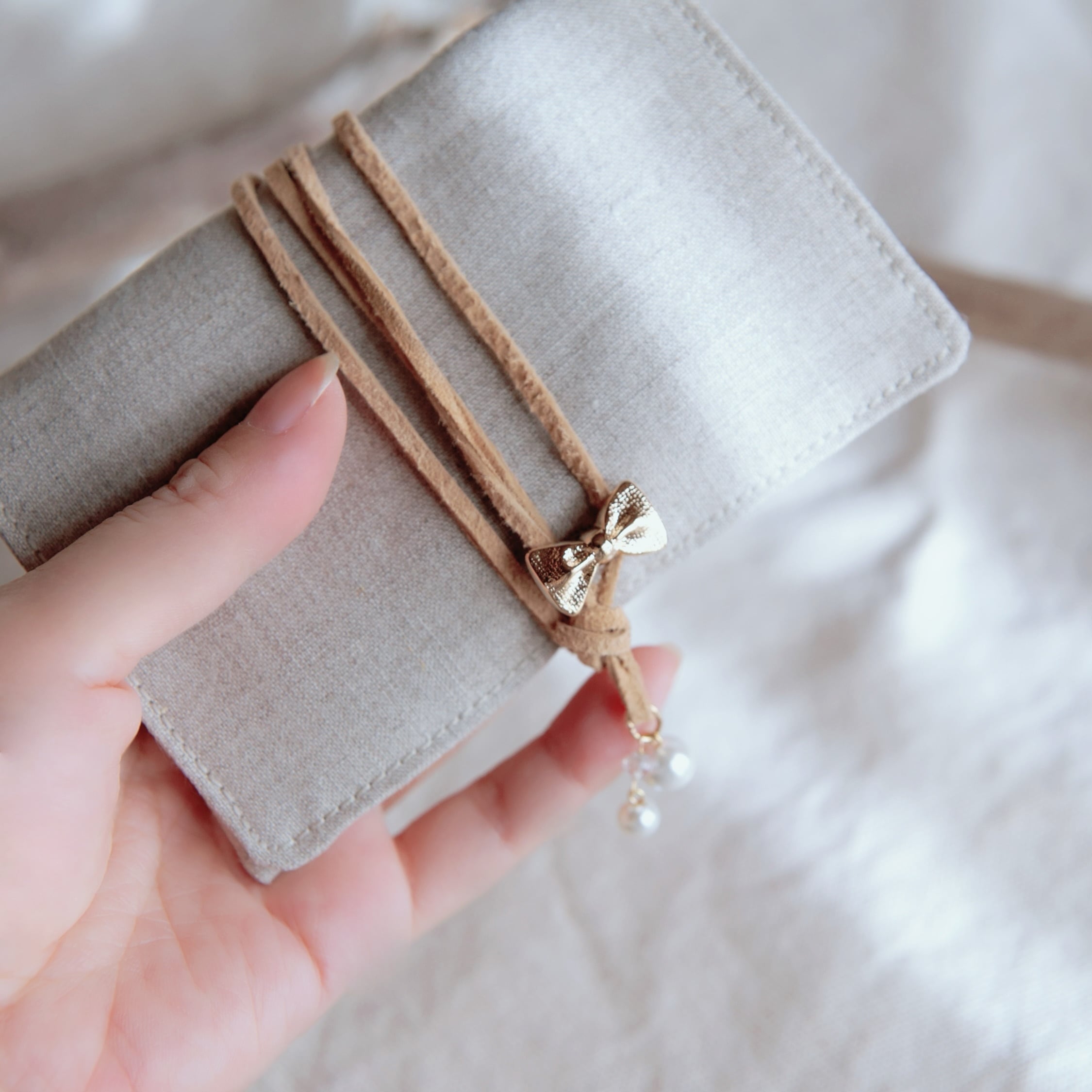 紐は細くて繊細だけど切れにくいのが特徴。使うほどなじんでいき、長く使っていただけると思います。