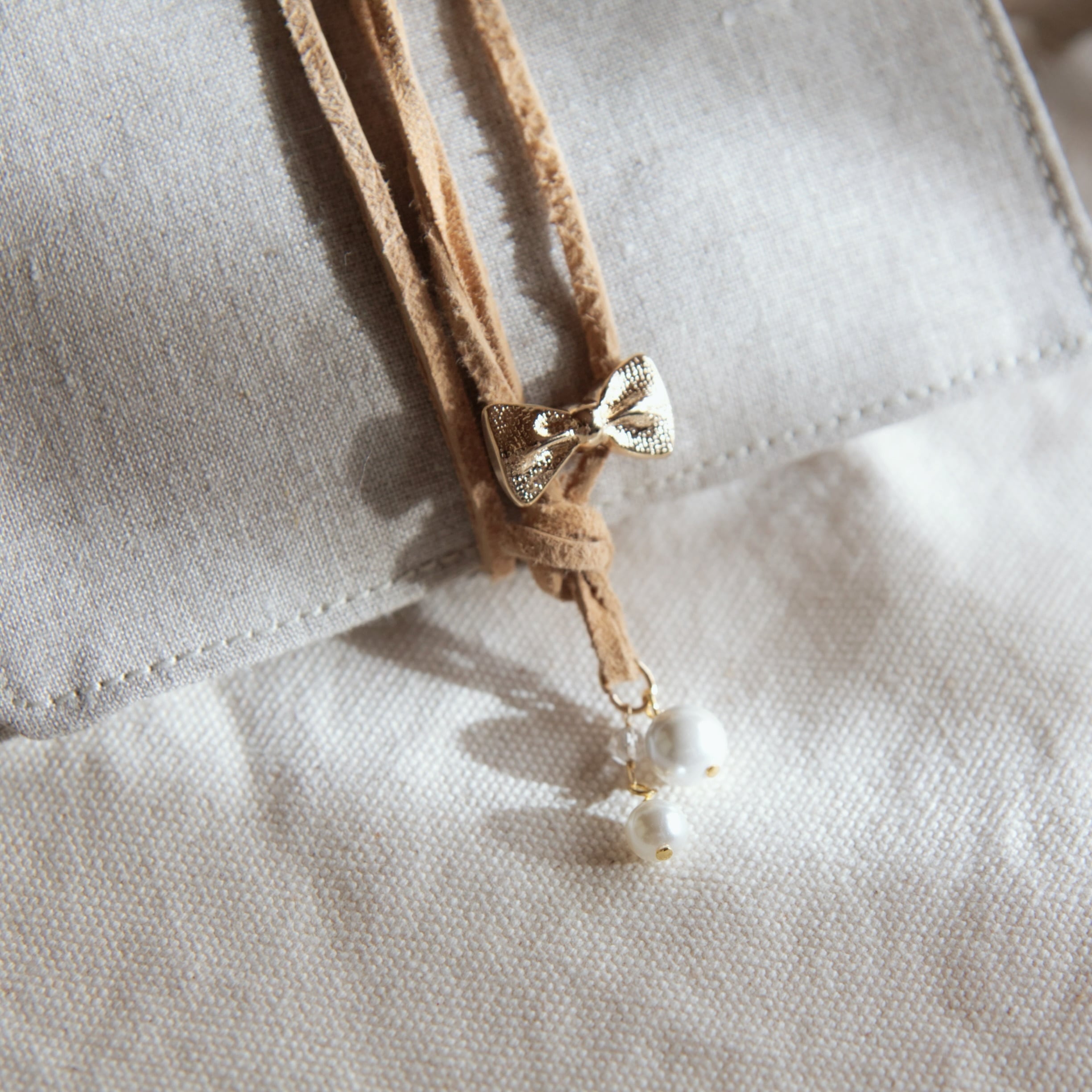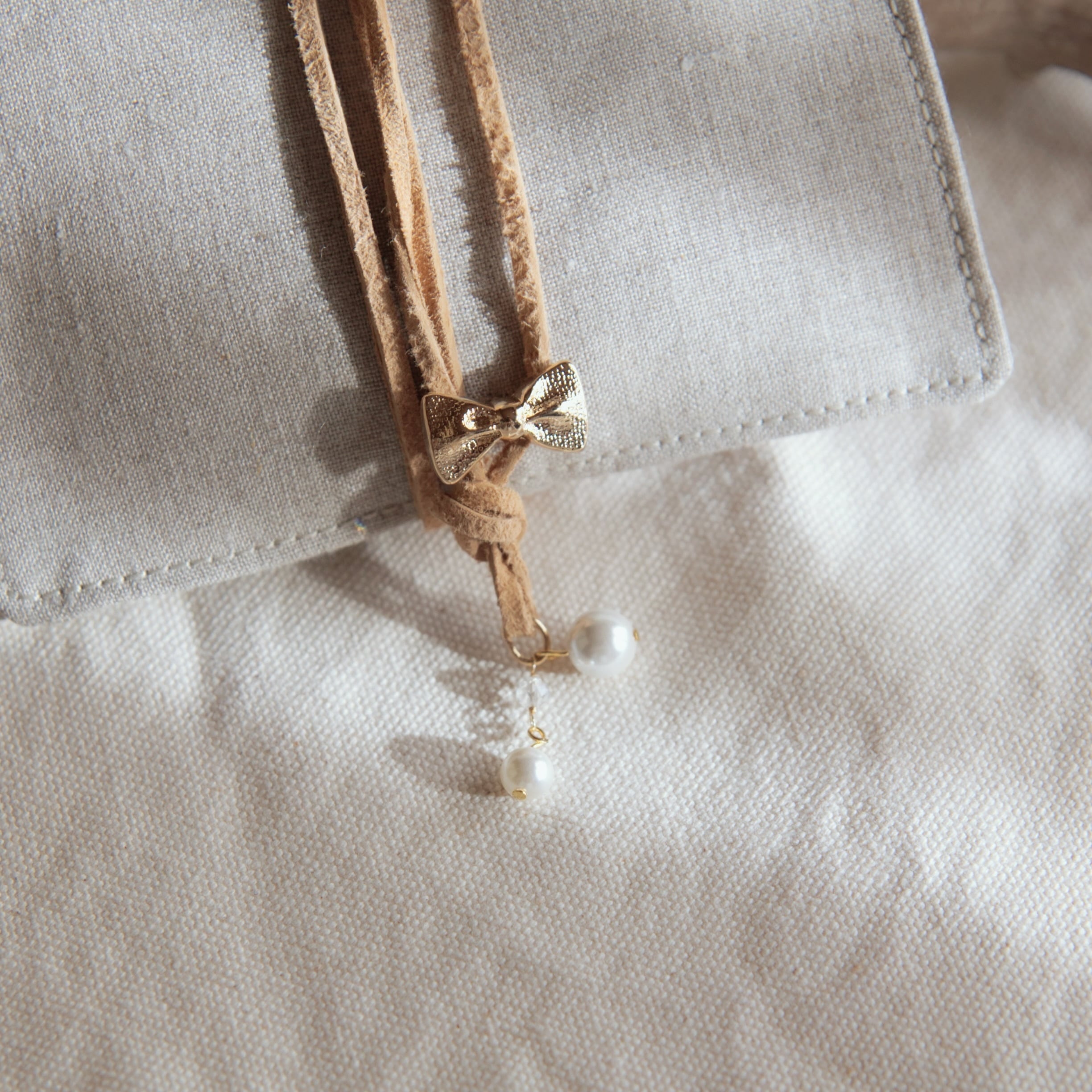 制作は試行錯誤を繰り返し、フランス製の上質でやさしいグレージュカラーのリネンと、アメリカのシカゴで見つけた本革のスエードを選びました。